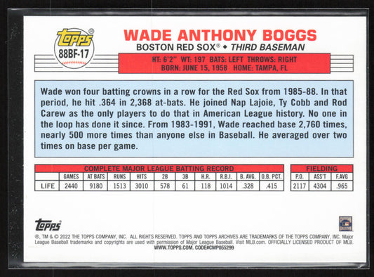 2022 Topps Archives #88BF-17 Wade Boggs 1988 Topps Big Foil