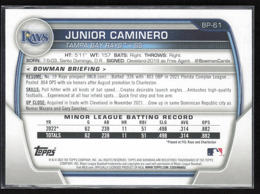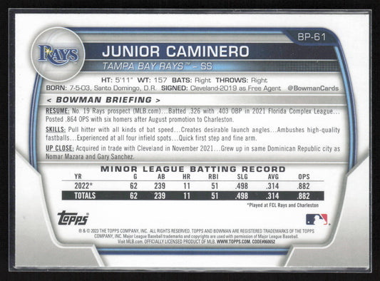 2023 Bowman #BP-61 Junior Caminero Prospects