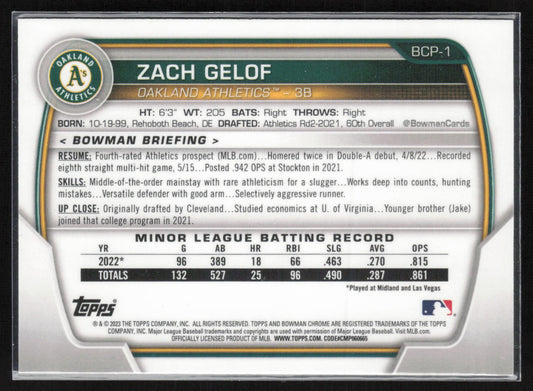 2023 Bowman #BCP-1 Zach Gelof Chrome Prospects