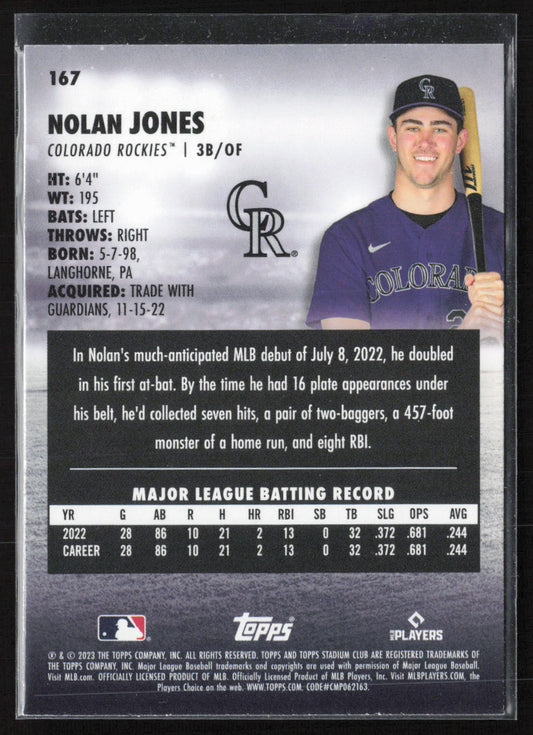2023 Stadium Club #167 Nolan Jones