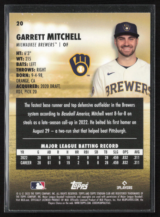 2023 Stadium Club #20 Garrett Mitchell