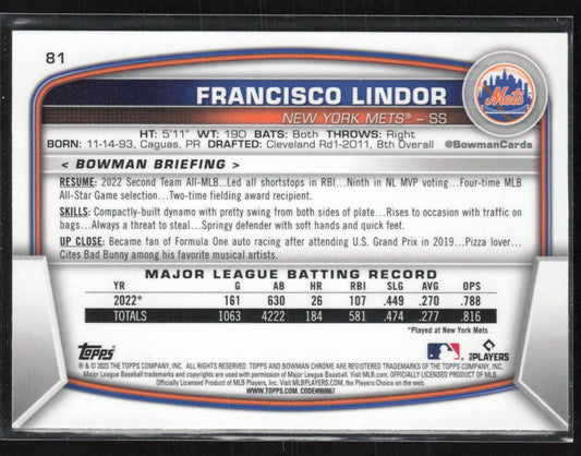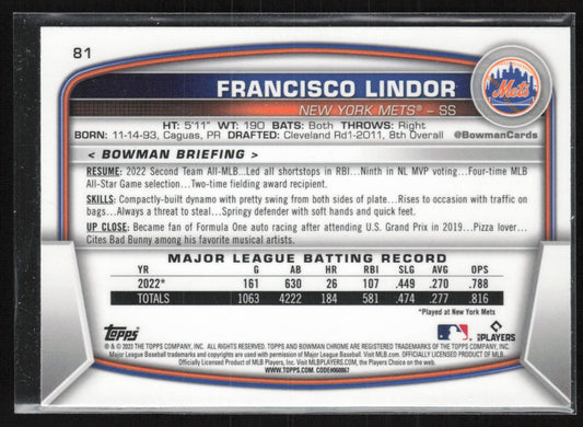 2023 Bowman #81 Francisco Lindor Mojo Refractors