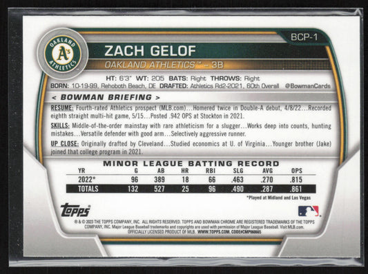 2023 Bowman #BCP-1 Zach Gelof Chrome Prospects