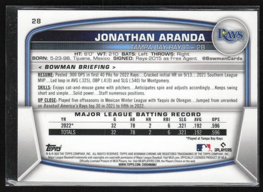 2023 Bowman #28 Jonathan Aranda Mojo Refractors