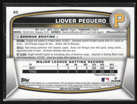 2023 Bowman #85 Liover Peguero Mojo Refractors
