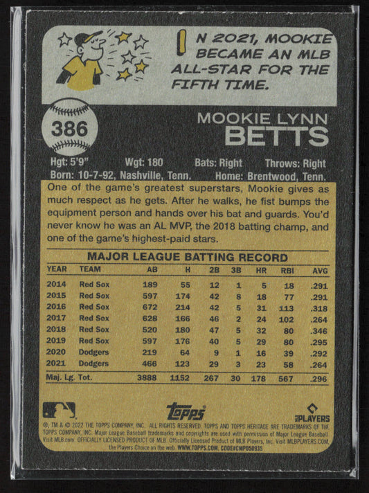 2022 Topps Heritage #386 Mookie Betts Chrome Purple Refractor