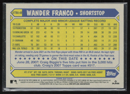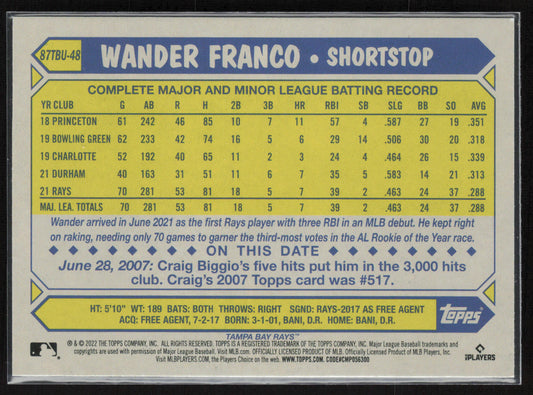 2022 Topps Update #87TBU-48 Wander Franco 1987 Topps Baseball 35th Anniversary