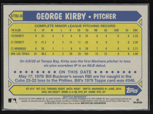2022 Topps Update #87TBU-36 George Kirby 1987 Topps Baseball 35th Anniversary