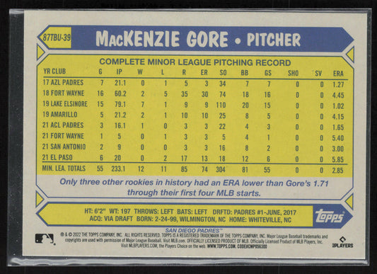 2022 Topps Update #87TBU-39 MacKenzie Gore 1987 Topps Baseball 35th Anniversary