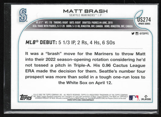 2022 Topps Update #US274 Matt Brash Rainbow Foil