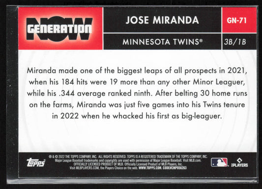 2022 Topps Update #GN-71 Jose Miranda Generation Now