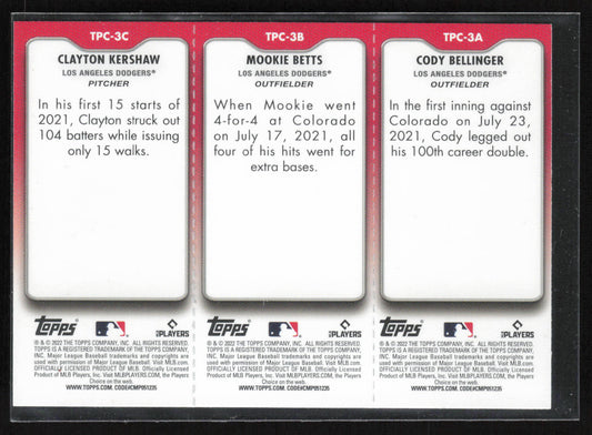2022 Topps Opening Day #TPC-3A-3C Bellinger / Betts / Kershaw Triple Play