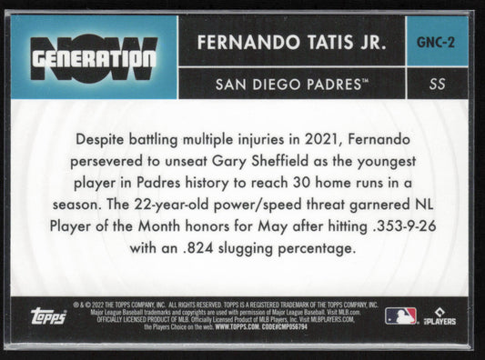 2022 Topps Chrome Update #GNC-2 Fernando Tatis Jr. Generation Now Chrome Black
