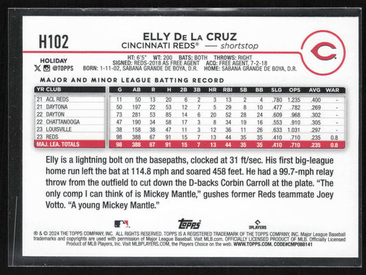 2024 Topps Holiday #H102 Elly De La Cruz