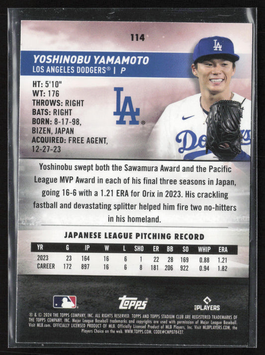 2024 Stadium Club #114 Yoshinobu Yamamoto Pink Foil