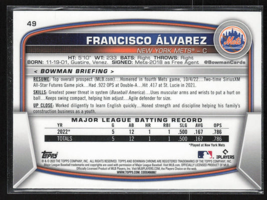 2023 Bowman #49 Francisco Álvarez Mojo Refractors