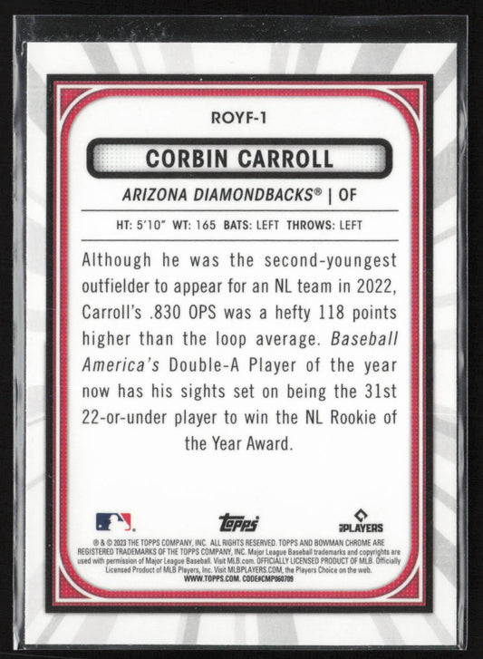 2023 Bowman #ROYF-1 Corbin Carroll Rookie of the Year Favorites
