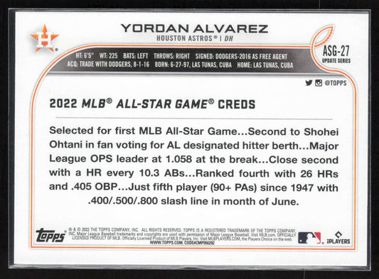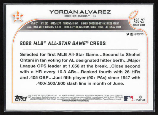 2022 Topps Update #ASG-27 Yordan Alvarez 2022 MLB All-Star Game