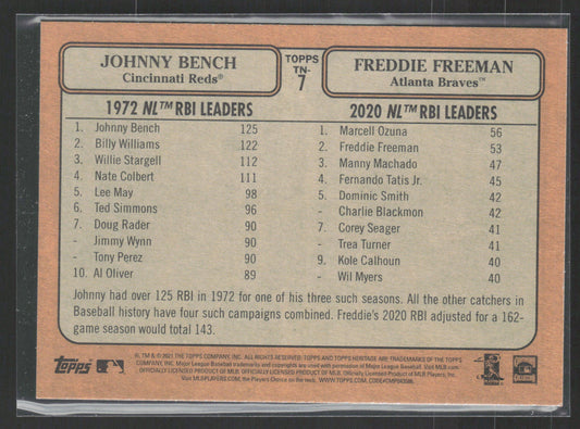 2021 Topps Heritage #TN-7 Johnny Bench / Freddie Freeman Then and Now