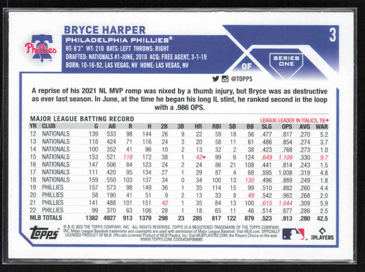 2023 Topps #3 Bryce Harper