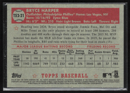 2021 Topps #T52-21 Bryce Harper 1952 Topps Redux