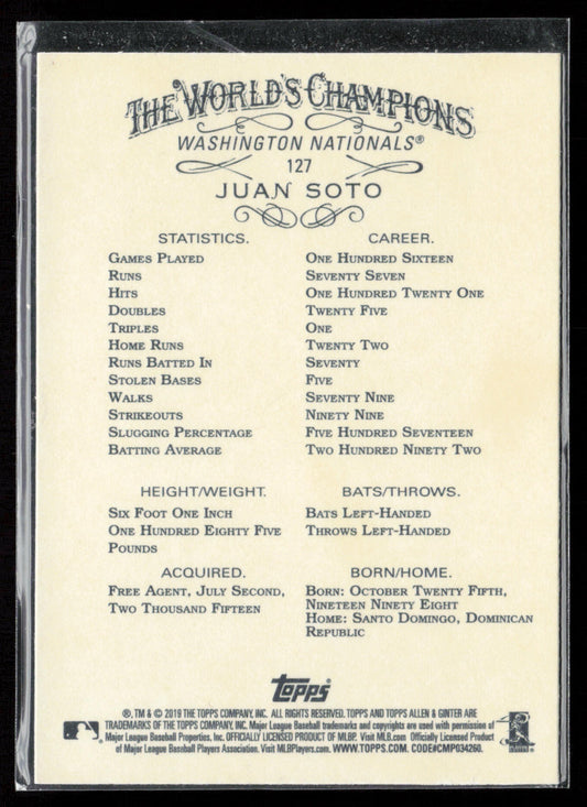 2019 Topps Allen & Ginter #127 Juan Soto