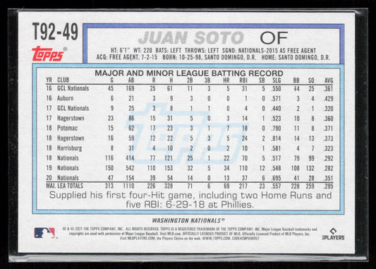 2021 Topps Update #T92-49 Juan Soto 1992 Topps Redux
