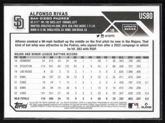 2023 Topps Update #US80 Alfonso Rivas