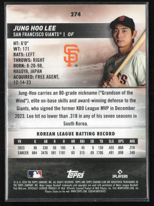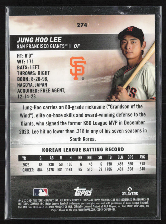 2024 Stadium Club #274 Jung Hoo Lee Red Foil