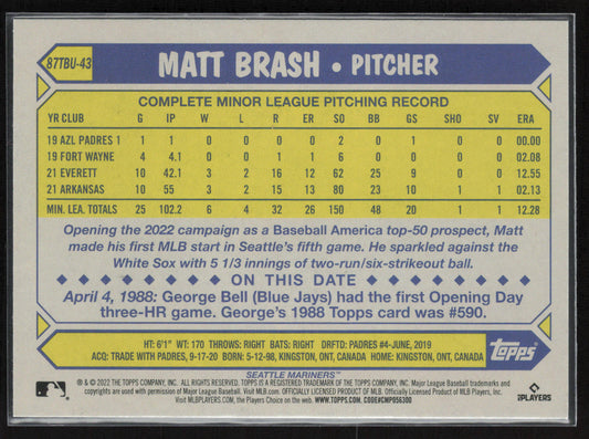 2022 Topps Update #87TBU-43 Matt Brash 1987 Topps Baseball 35th Anniversary