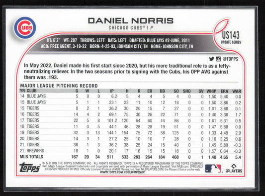 2022 Topps Update #US143 Daniel Norris Royal Blue