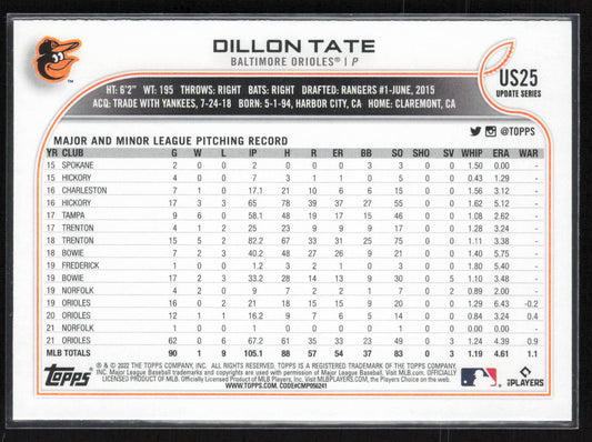 2022 Topps Update #US25 Dillon Tate Royal Blue