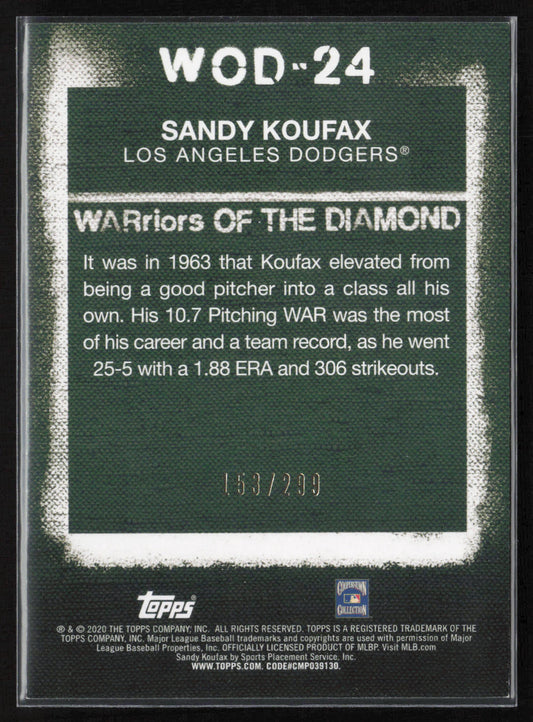 2020 Topps #WOD-24 Sandy Koufax WARriors of the Diamond