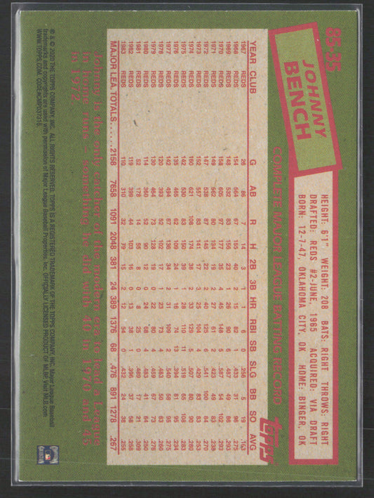 2020 Topps #85-35 Johnny Bench 1985 Topps Baseball 35th Anniversary (Series One)