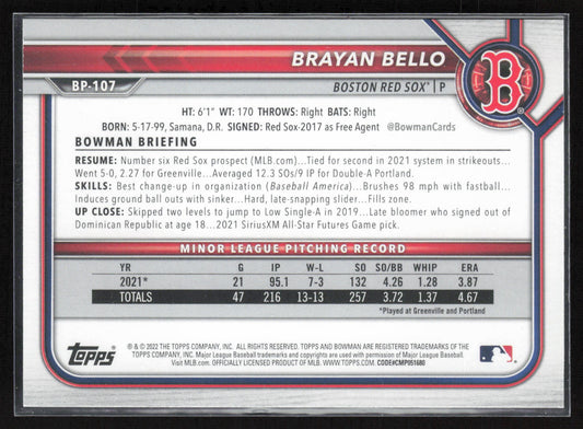 2022 Bowman 1st Edition #BPPF-107 Brayan Bello