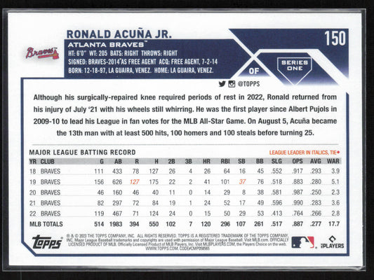 2023 Topps #150 Ronald Acuña Jr. Royal Blue