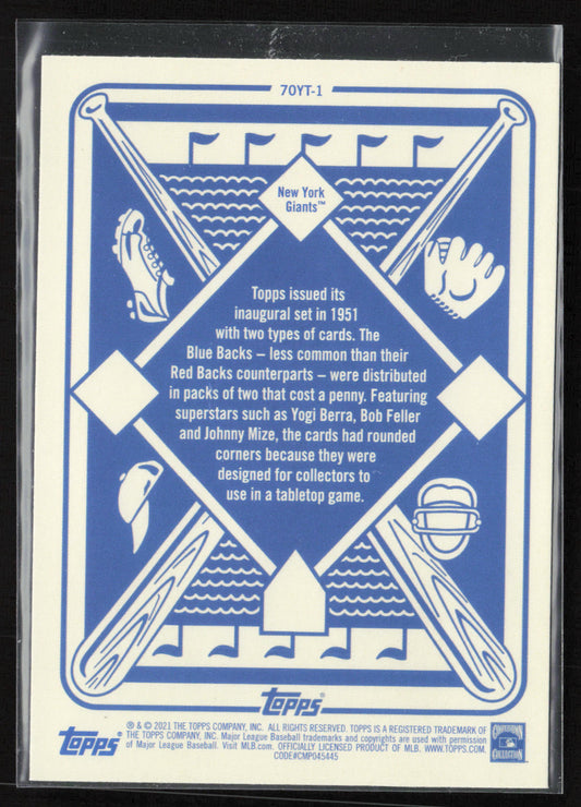 2021 Topps #70YT-1 Willie Mays 70 Years of Topps Baseball (Series 2)