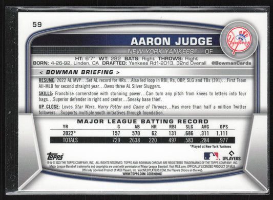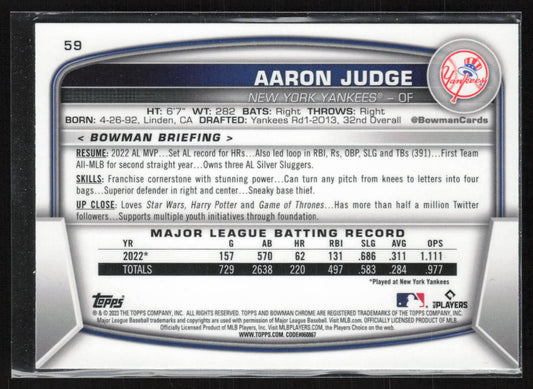2023 Bowman #59 Aaron Judge Mojo Refractors