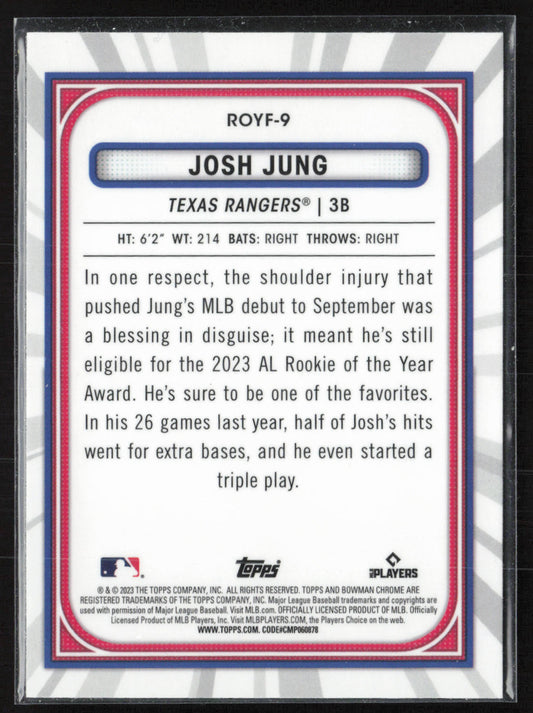 2023 Bowman #ROYF-9 Josh Jung Rookie of the Year Favorites Mojo Refractors