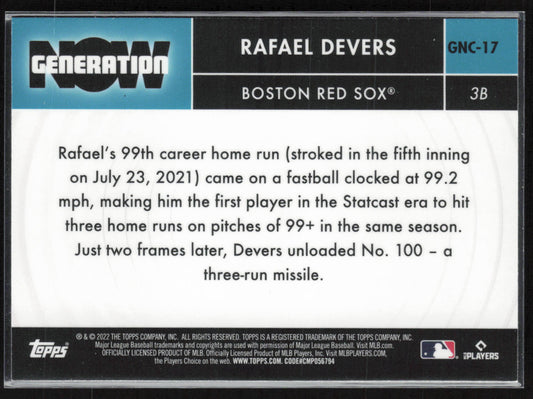 2022 Topps Chrome Update #GNC-17 Rafael Devers Generation Now Chrome