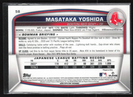 2023 Bowman #58 Masataka Yoshida Mojo Refractors