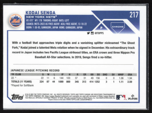 2023 Topps Chrome #217 Kodai Senga Sepia Refractors
