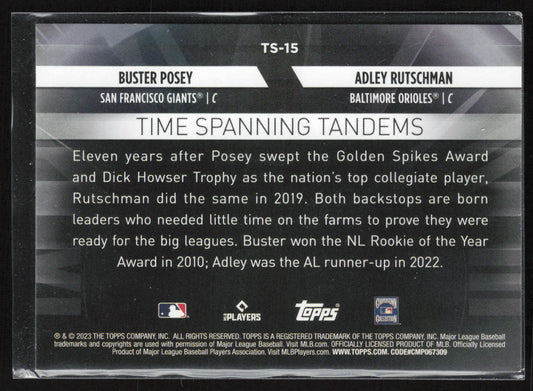 2023 Topps Update #TS-15 Adley Rutschman / Buster Posey Time Spanning Tandems
